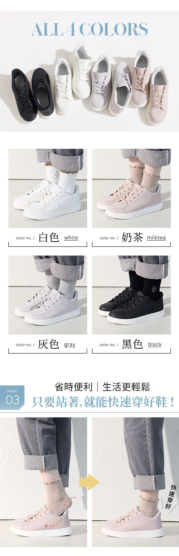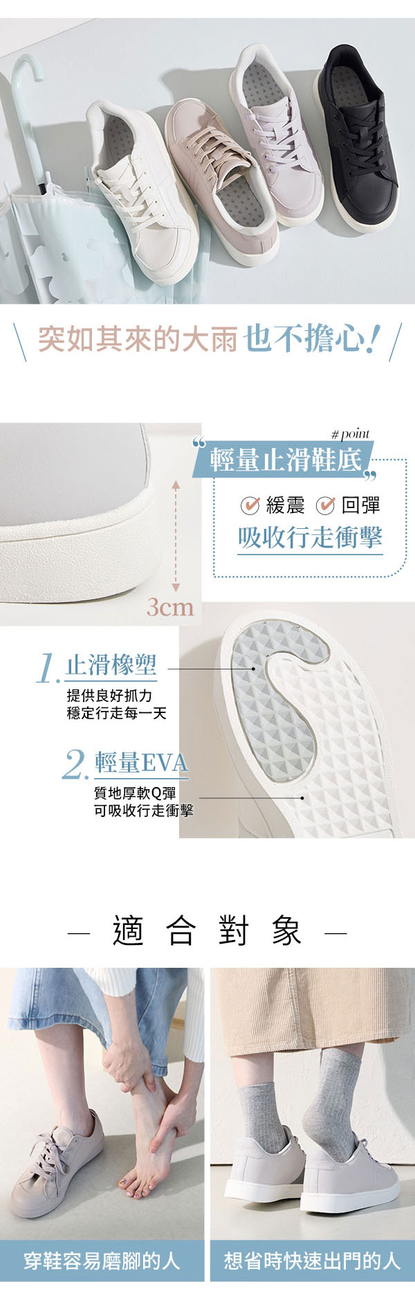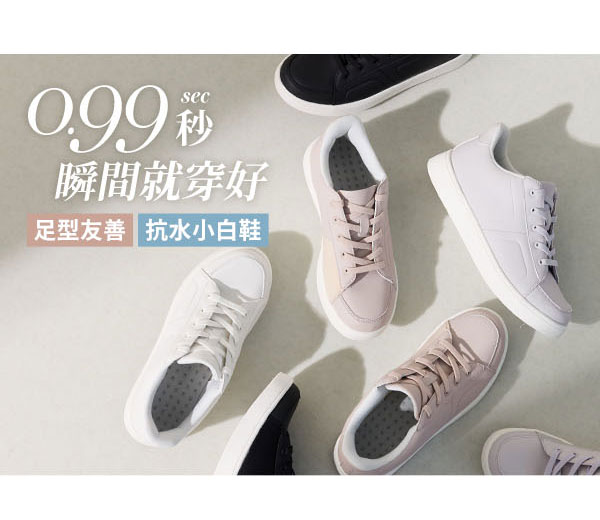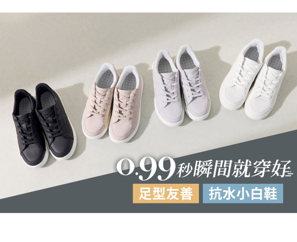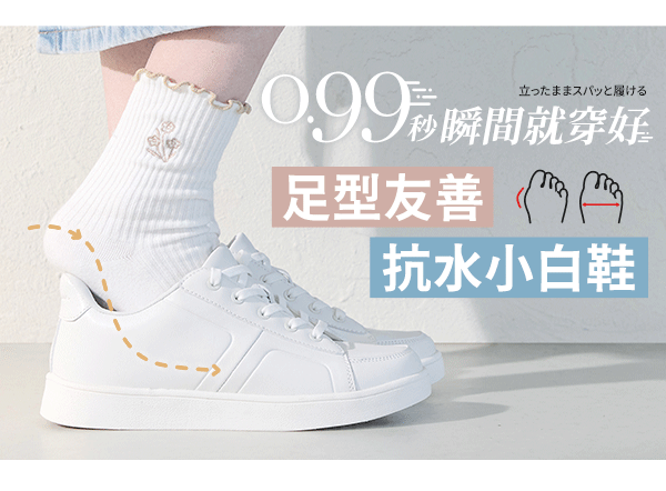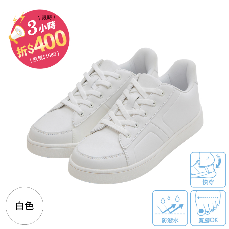 (3hr快閃價$1280)0.99秒瞬間就穿好!足型友善防潑水小白鞋