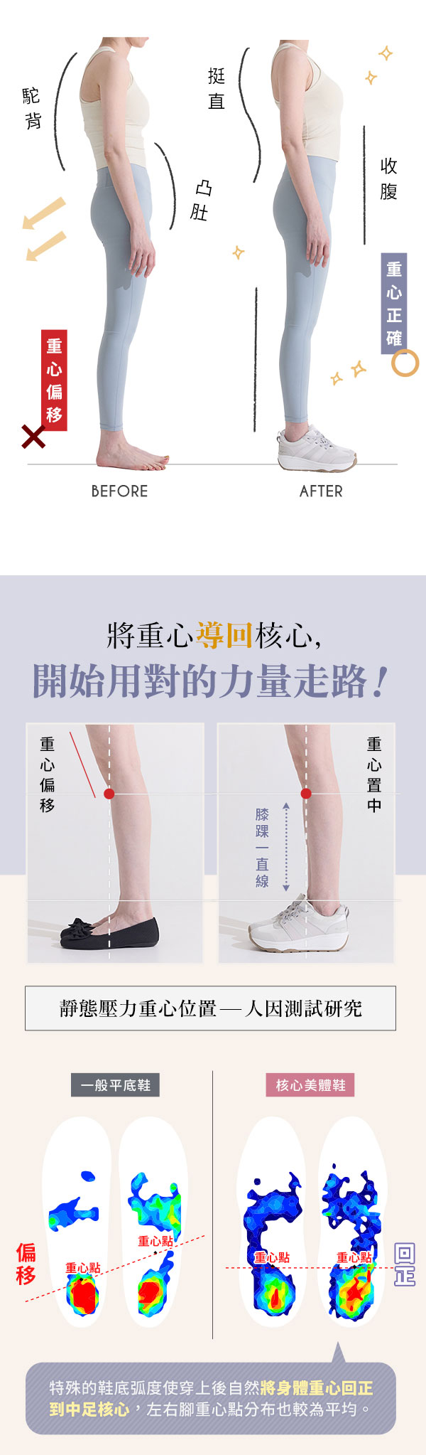 (3hr快閃價$1480)完美體態!3E寬楦足弓支撐核心美體鞋