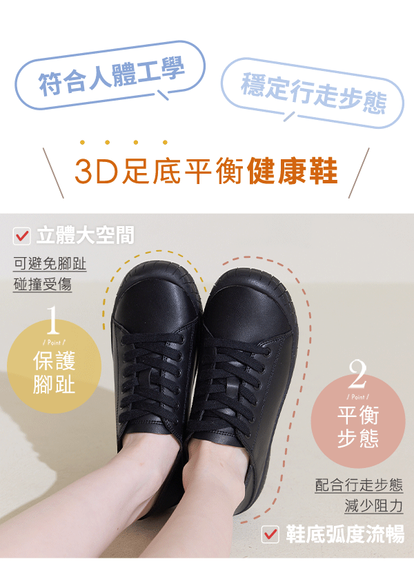 • (小花組員專屬賣場) (全黑)足部減壓!3D步態平衡健康機能鞋