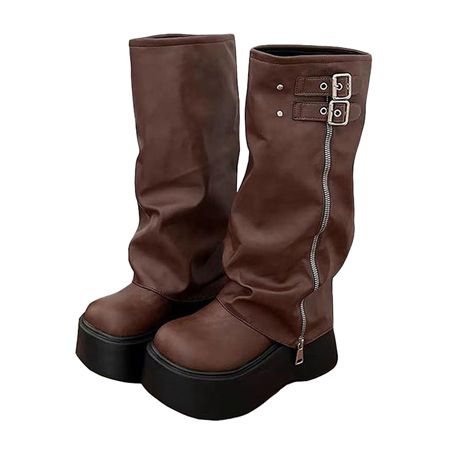日本GRL雙皮帶拉鍊厚底長靴