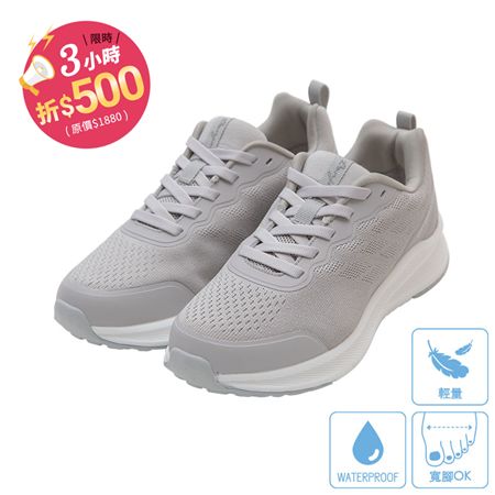 (3hr快閃價$1380)(現貨)透氣防水!柔軟零著感厚底緩震休閒鞋-淺灰