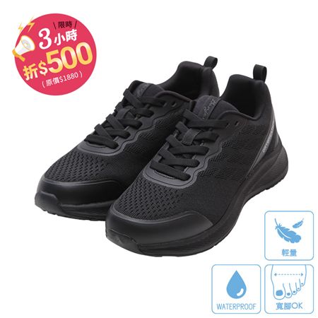 (3hr快閃價$1380)(現貨)透氣防水!柔軟零著感厚底緩震休閒鞋-黑色