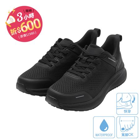 (3hr快閃價$1380)4hr防水×0.99秒快穿!寬楦機能休閒鞋-黑色