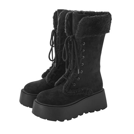 日本GRL絨面麂皮保暖綁帶靴-黑色