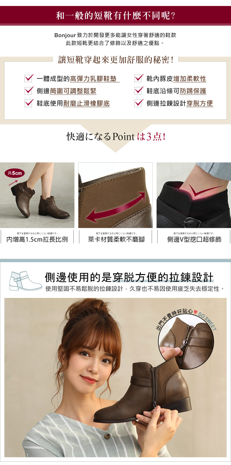 ◎ 側邊穿脫方便拉鍊的貼心設計,省時不費力!