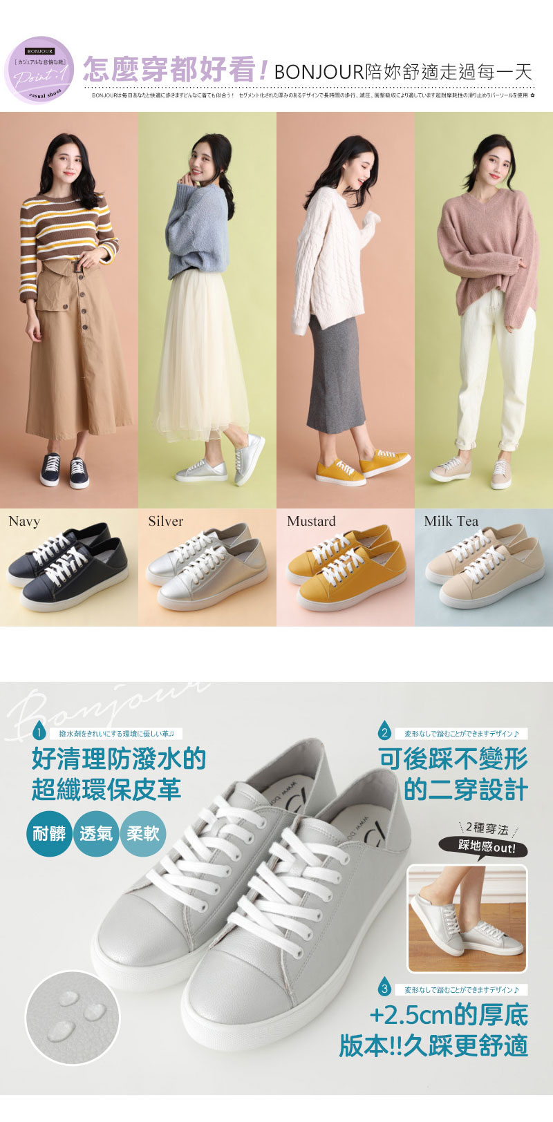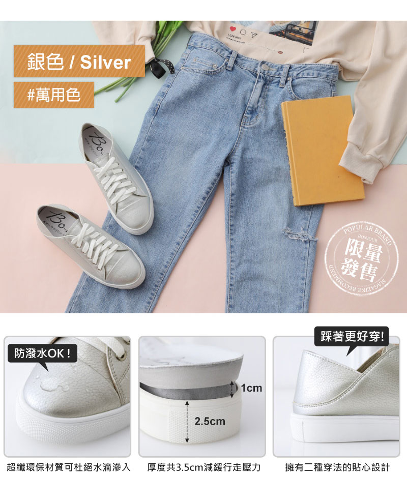 ◎ 可後跟不變形的二穿設計 當便鞋或踩著穿都OK!