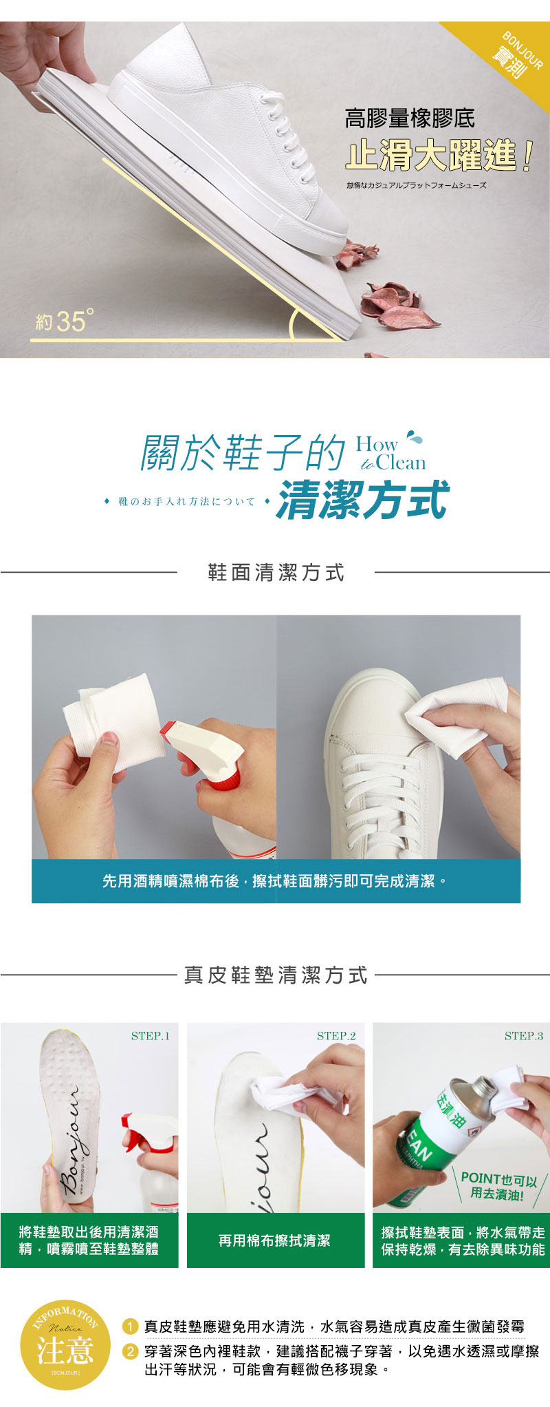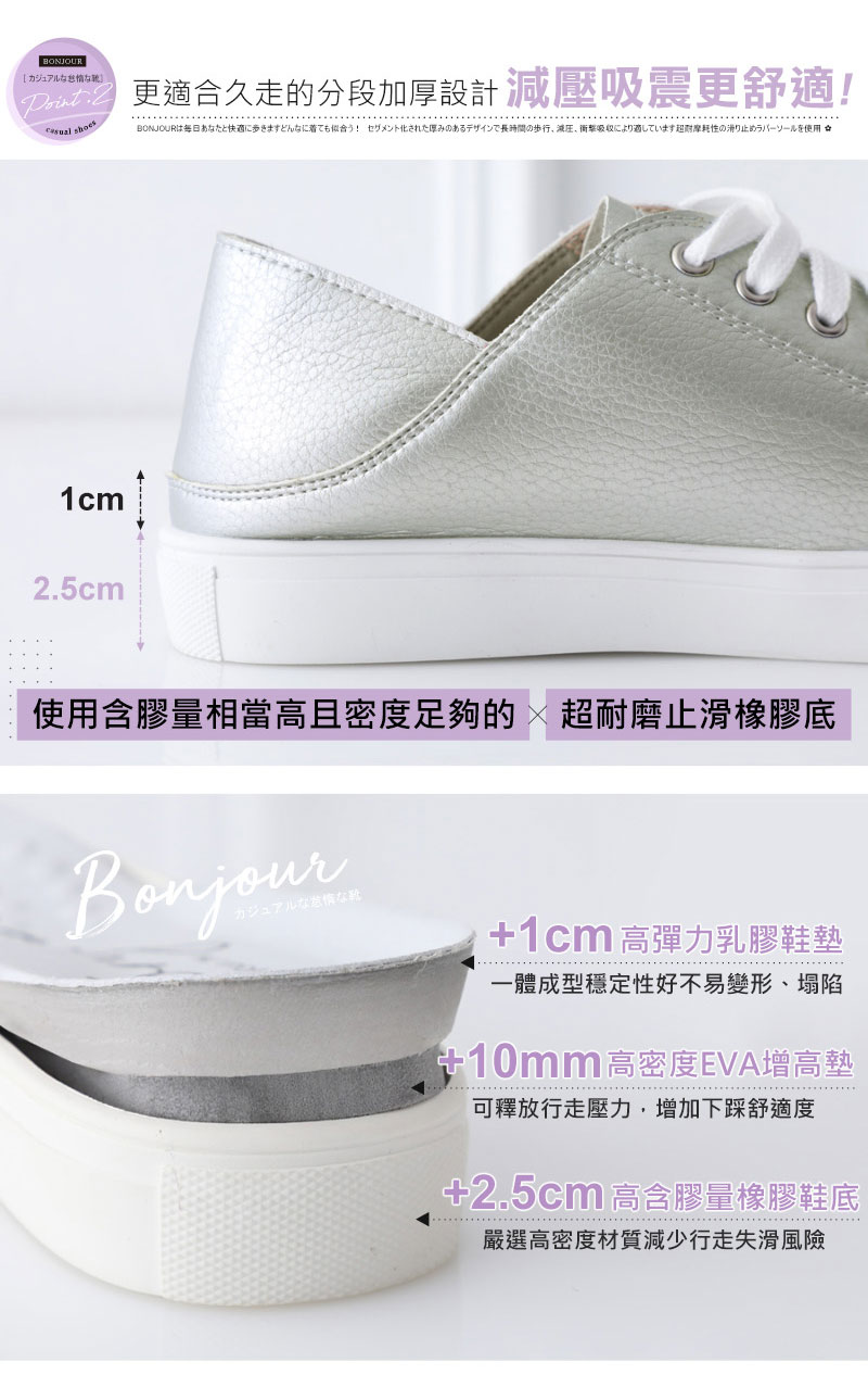 ◎ +3.5cm增高止滑橡膠厚底可久站踩地感out!