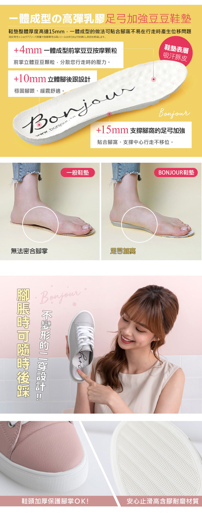 ◎ 不織布中底柔軟升級曲折度佳,久踩不易扁塌更耐走。 |